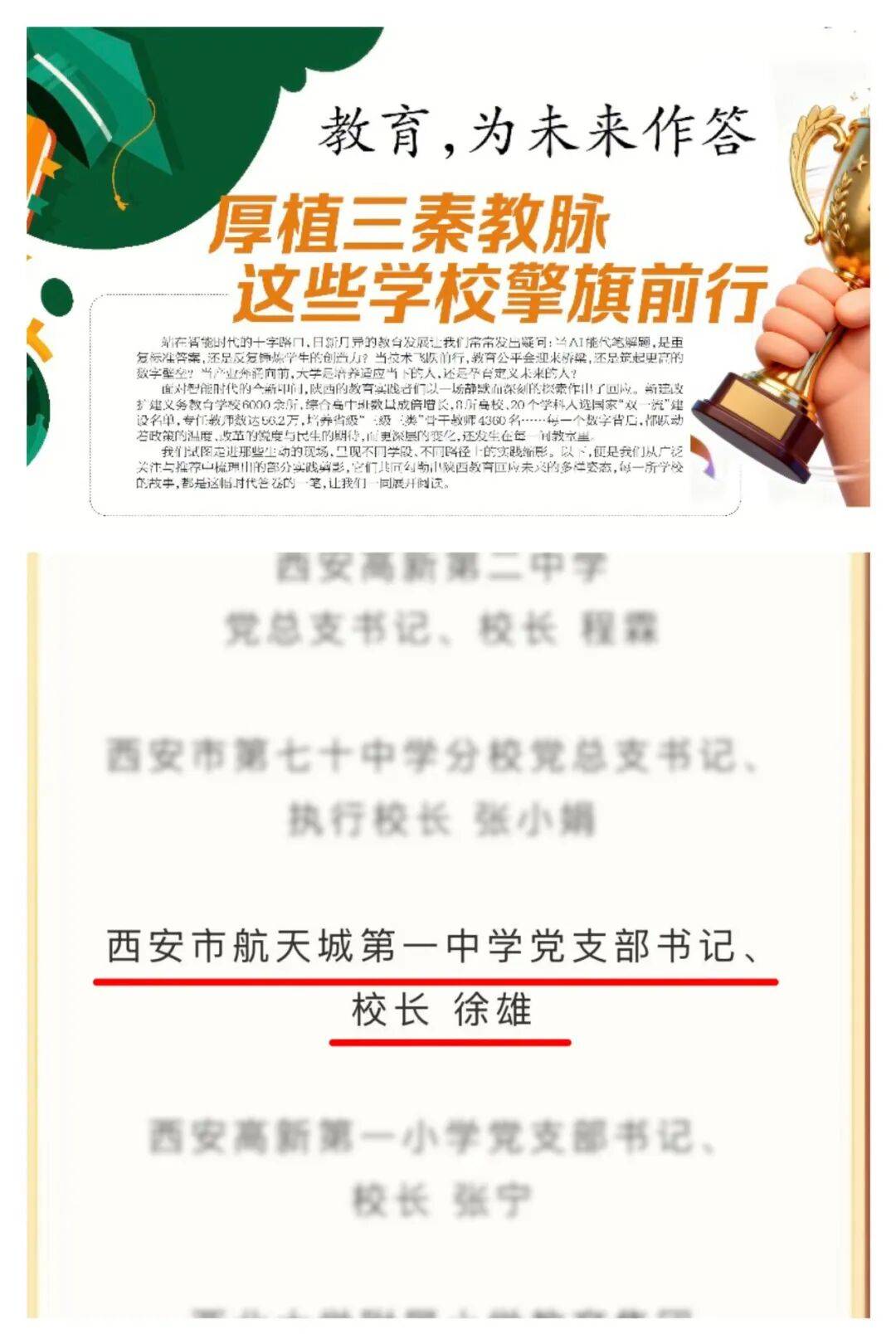 教育部发布《关于教育部教师步队扶植专家指点委员会名单的公示》,徐雄校长入选教育部教师步队扶植专家指点委员会中小学长儿园保障分委会委员长安区(航天)召开2025年教师节庆贺大会,我校党支部、校长徐雄被授予“优良校园长”称号,朱敏、梁瑞淋被授予“先辈教育工做者”称号,马蕴、张维、王雪茹、、韩艳被授予“优良教师”称号