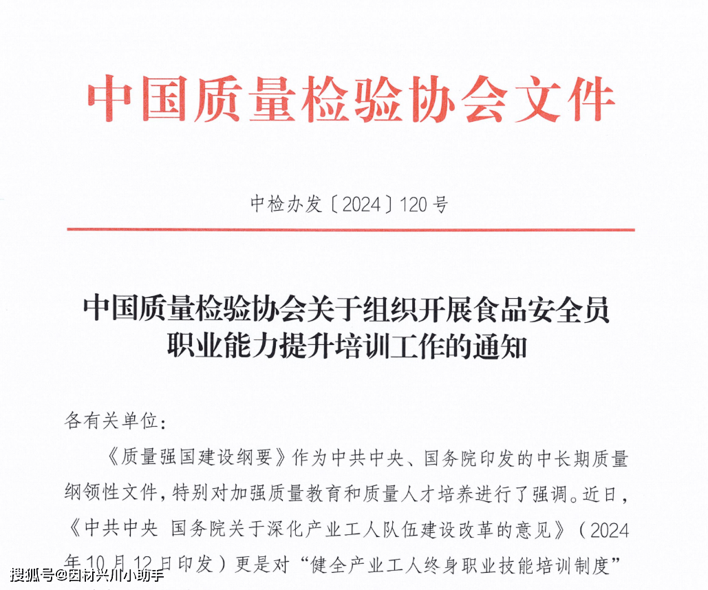 培训通过培训并经测验及格后,将由中国质量查验协会依法依规颁布《食物平安员职业能力提拔培训及格证书》;中国质量查验协会做为质量专业组织颁布的相关培训及格证书,可做为岗亭人员继续教育及专业手艺能力查核的参考根据。