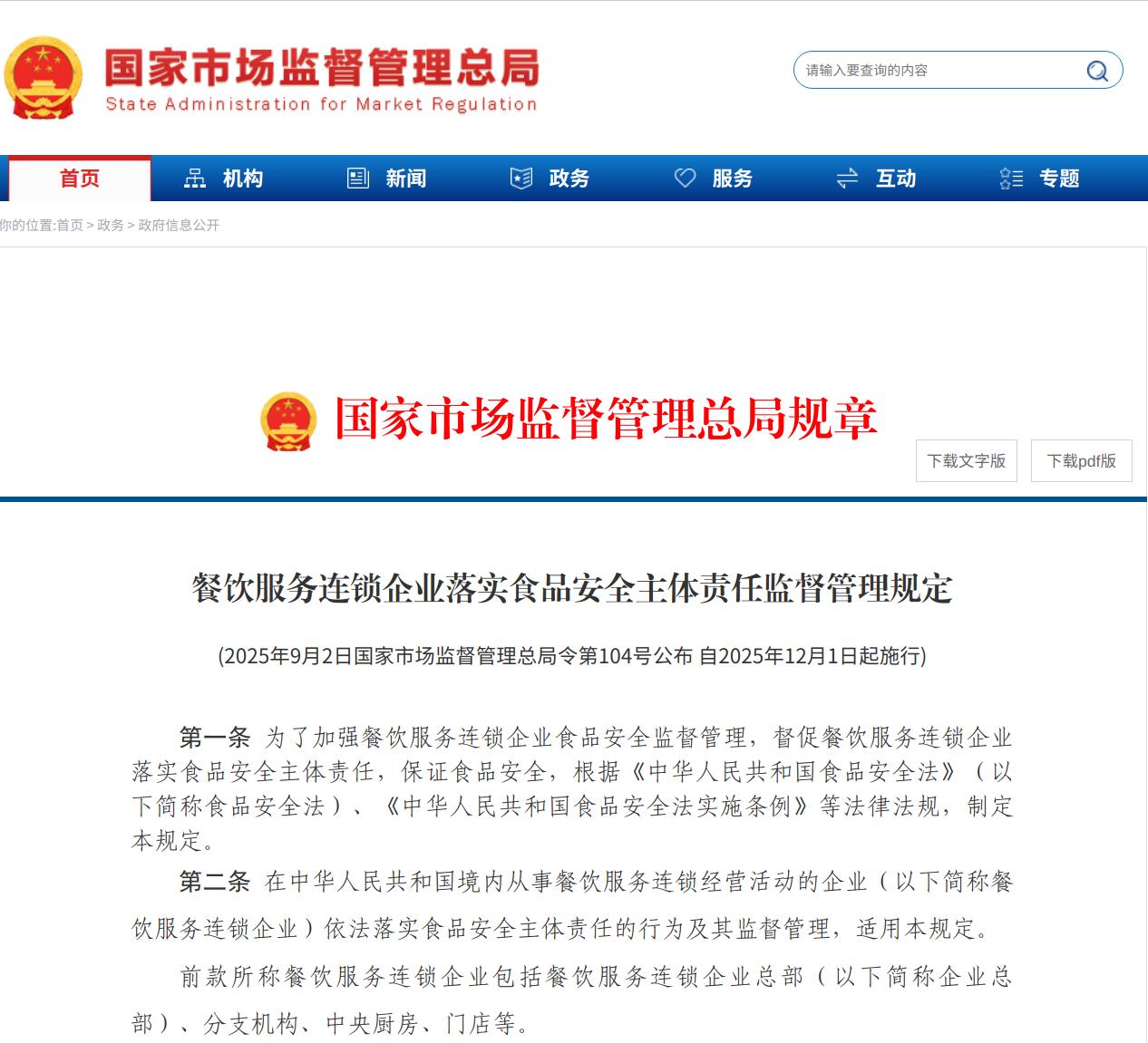 这一行业痛点,近日市场监管总局发布《餐饮办事连锁企业落实食物平安从体义务监视办理》,把总部和分支机构以及门店的义务慎密毗连起来,进一步锁定食物平安。