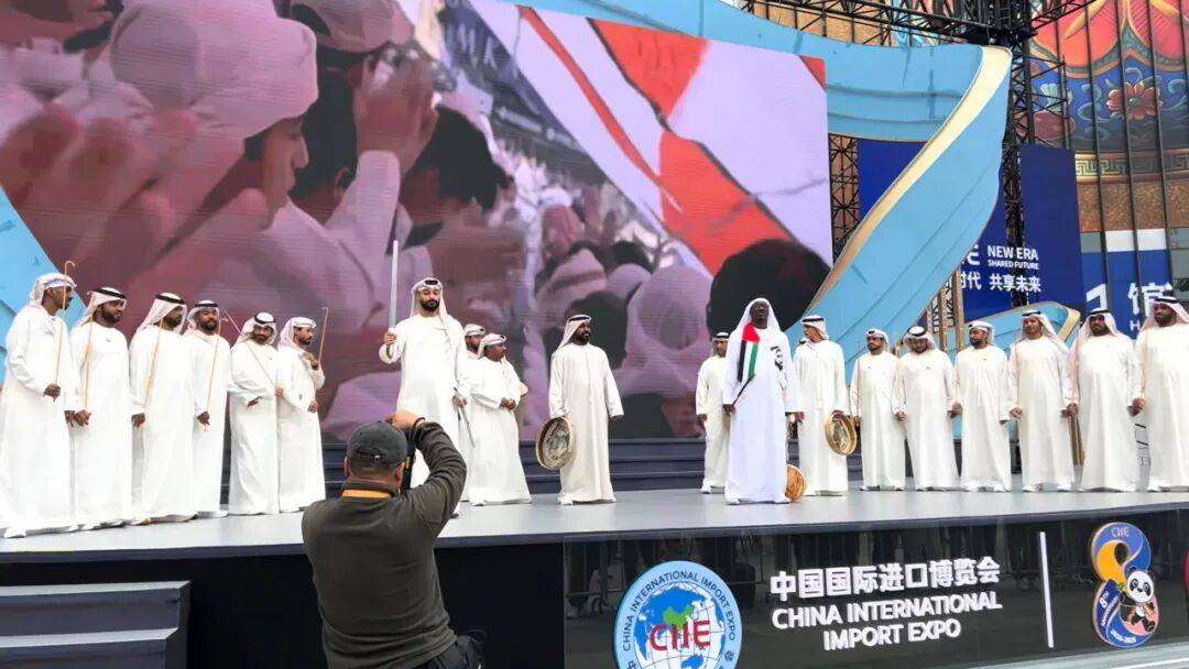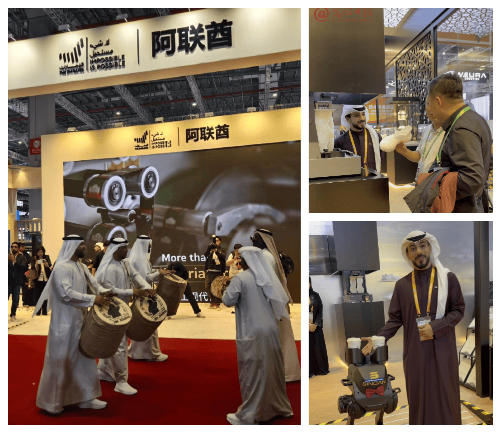 阿联酋聚焦先辈手艺、洁净能源、食物平安取物流等范畴,展馆上演了国宝级保守风俗跳舞“阿亚拉舞”,并展现骆驼奶洗护用品等特色产物,展示阿联酋的文化魅力取财产特色。